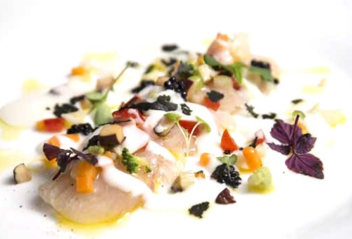 Raw Amberjack with Vegetables, Liquid Grana Padano, and Truffle Perlage – Chef Fulvio Siccardi