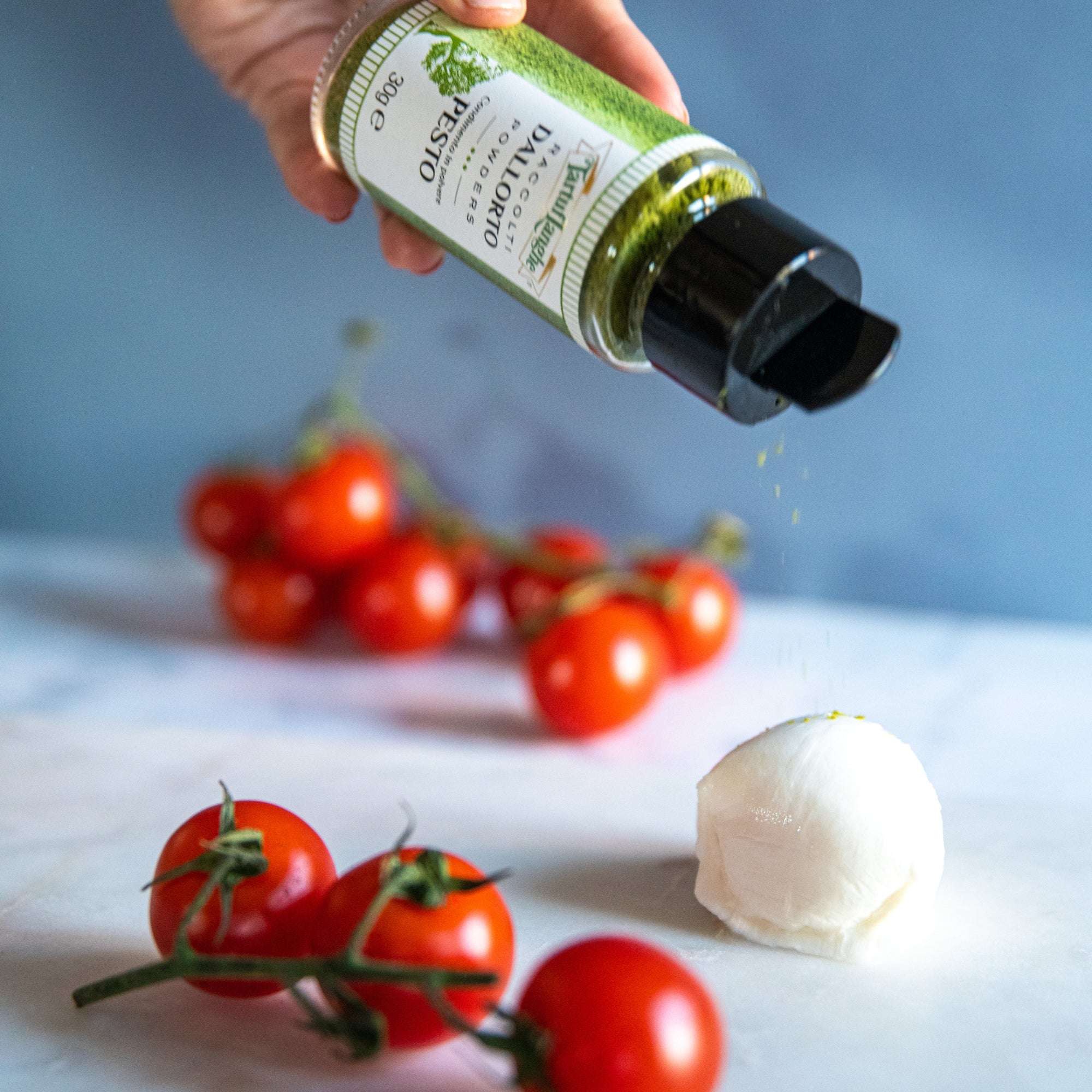 Try our Dallorto , exquisite cryo-dried pesto powder.