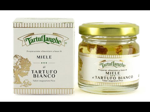 White truffle honey-based food preparation - Ingredients : 99% acacia honey, 0.1% freeze-dried Italian white truffle (Tuber magnatum Pico) (equivalent to 0.6% fresh truffle), natural flavoring. GLUTEN-FREE